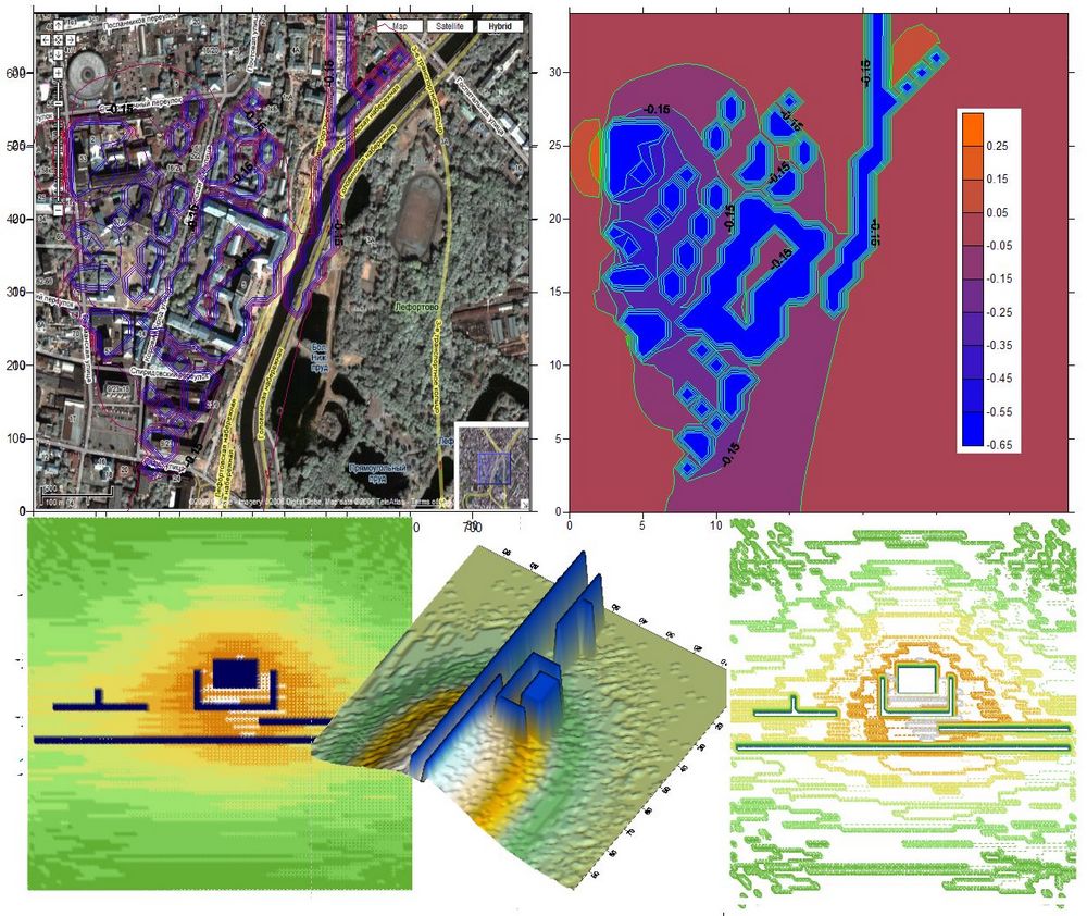 Расчетная схема на базе «простого» алгоритма подтвердила свое право на существование при применении базового модуля по расчету перетоков грунтовых вод. Пример эффективного решения инженерной задачи о подтоплении городской территории при застройке с применением прямой вычислительной схемы приведен на рисунке 1.