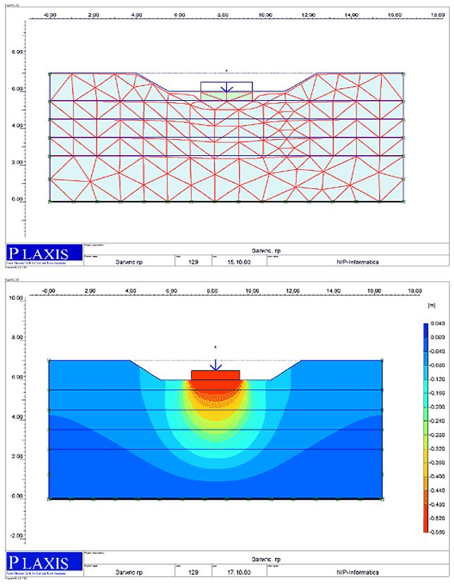 Сравним задачу, решаемую при расчете осадки зданий с применением конечно-элементного построения и по предлагаемому в данной статье «простому» алгоритму. Необходимо обратить внимание читателей, что интересующая задача осадки прямоугольного в плане фундамента в стандартном пакете сведена к плоской задаче. Результат такого приближения распространяется на решение поставленной задачи пространственного расчета. Причина подмены заключается в значительно более сложном построении трехмерной конечно-элементной сетки. Полное время постановки, решения и проверки объемной задачи могут на порядок превышать получение решения по малообоснованной плоской схеме. Подобные решения применяются на практике постоянно и стали неким стандартом поведения. В строительстве так называемые расчетные методы приводят к завышению затрат и не гарантируют получения реальных прогнозов.