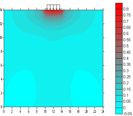При этом стоит обратить внимание, что конечно-элементная схема в стандартном пакете не показала неоднородности распределения перемещений в глубине, что, кстати, соответствует теоретическому решению, а «простой» алгоритм показал эту неравномерность.