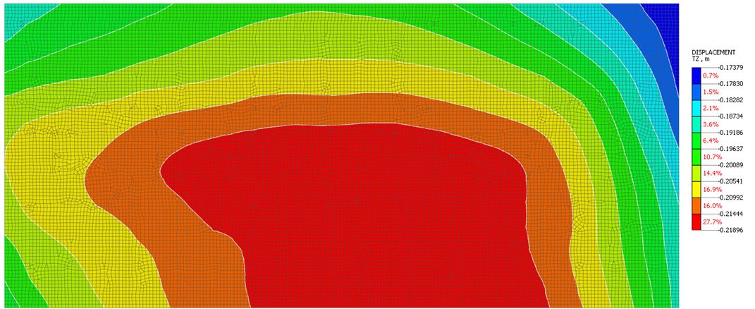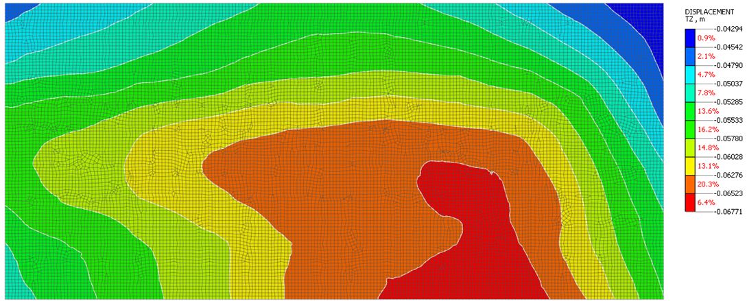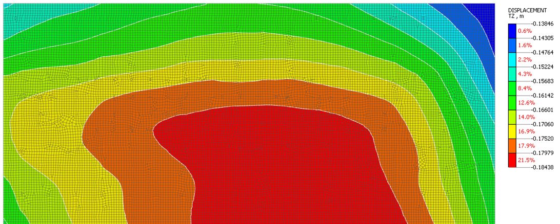 Рис. 2. Подрядчик Y, модель Mohr-Coulomb, среднее значение осадки 13,84 см