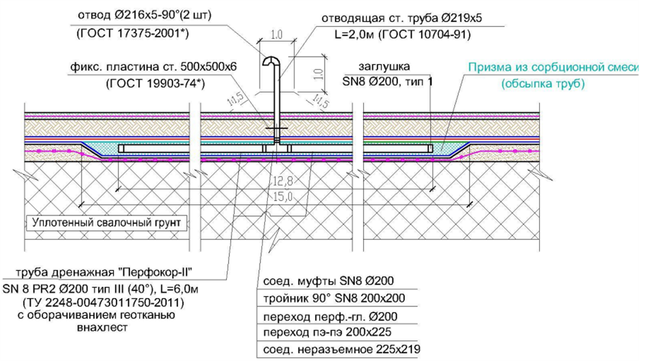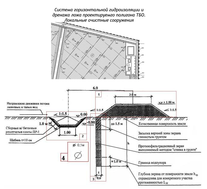Система сбора фильтрата рассчитывается и устанавливается до начала приема отходов, на поверхность защитного экрана ложа полигона и состоит из (рис. 1):