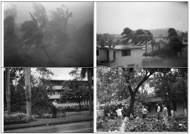 Когда мы ещё находились в Сантьяго, поступили первые сообщения о зарождении небольшого тропического циклона в Атлантическом океане чуть северо-восточнее, почти восточнее Кубы. Газета «Гранма» в то время почти в каждом номере публиковала космические снимки острова и прилегающей территории с наших метеоспутников, тогда это было в порядке вещей; по ним я почти без ошибок оценивал предстоящую погоду на несколько дней. На первых снимках из космоса просматривалось небольшое белое пятно – облачность на фоне тёмного моря. Несколько дней оно почти неподвижно стояло на месте, и метеорологи бесстрастными голосами сообщали о нём. Постепенно белое пятно разрасталось, но его центр оставался почти на месте, очень медленно смещаясь на юго-запад. 16 ноября он вдруг ускорил движение, а 18 ноября на Кубе объявили штормовое предупреждение. С утра объявили по радио, что ураган «Кейт» (Kate) надвигается на Кубу и уже утром бушевал в восточных провинциях, а к вечеру он может достичь Гаваны (почти 1000 км). В 16 часов, когда мы ехали с работы, усилился ветер, на море волны до 1 м, по небу несутся рваные облака. По телевидению в 8 вечера передали специальный бюллетень №3 о продвижении циклона. В это время он (его центр) находился в 40 км восточнее Ольгина, ветер достигал 70 км/час, циклон перемещался к западу со скоростью 26 км/час. На востоке ураган и дождь, а в Гаване только ветер, отдельные облака, в просветах – звёзды на чёрном небе. Мигает экран телевизора, несколько раз отключался свет на несколько минут. Порывистый ветер дёргает жалюзи и двери. В 10 вечера передали бюллетень №4: ураган устремился в Флоридский пролив, захватывая левым крылом территорию Кубы. Скорость ветра достигает уже 170 км/час, температура воздуха 22о, влажность 76%. Сильное волнение и очень большая опасность на всём северном побережье, вплоть до Варадеро, западнее – большая опасность. В 9 утра – по квартире гуляет ветер, на улице несколько раз срывается кратковременный дождь.