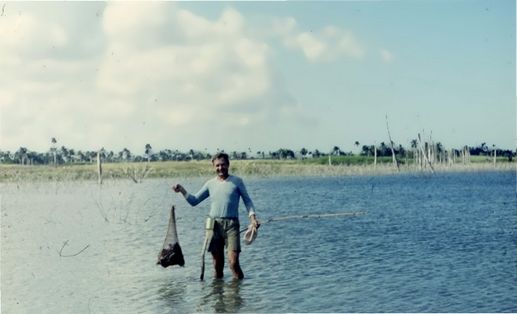 Хочу ещё добавить об этой командировке, что это была самая дальняя моя поездка по земле на Кубе: до Камагуэя ехали рейсовым автобусом, в Камагуэе две ночи провели в отеле с таким же названием, затем на джипе – до Пуэрто Падре, где жили в «Голубой вилле» (Villa Asul) и оттуда ездили в Пуэрто Карупано. В заливе Карупано я решил искупаться несмотря на сильный ветер и мутную воду. Ничего нового не увидел, потому что прозрачность воды была не более 20–30 см,  да ещё на отмели наколол коленку о морского ежа, уже на берегу извлёк 4 обломка игл до 5 мм. Питались по-кубински: ели знаменитую рыбу паргу, пиццу, йогурт, по дороге в Камагуэй и обратно на остановках пили сок из сахарного тростника – гуарапу, выжатую при нас специальной ручной машиной из стеблей тростника, которые кучкой лежали на полу в павильоне.