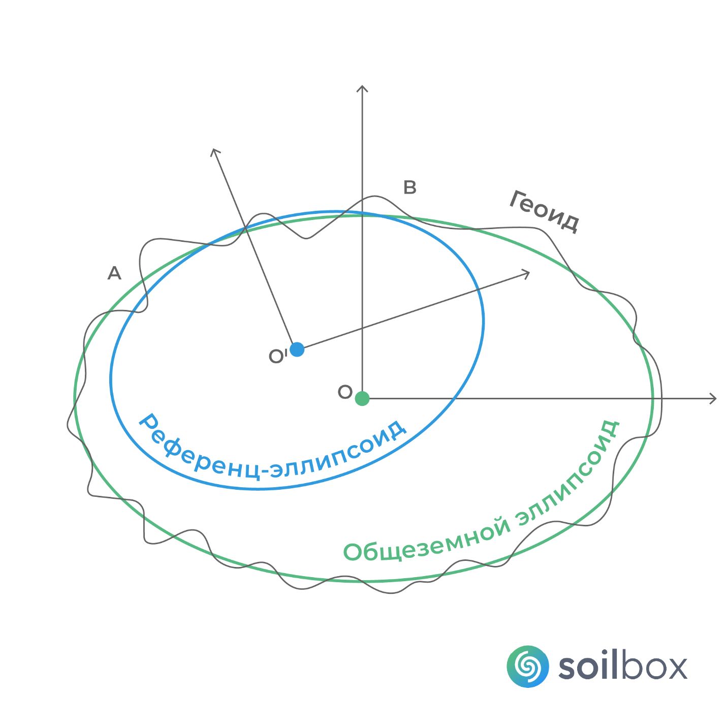 Рис. 3. Связь общеземного эллипсоида с геоидом и референц-эллипсоидом
