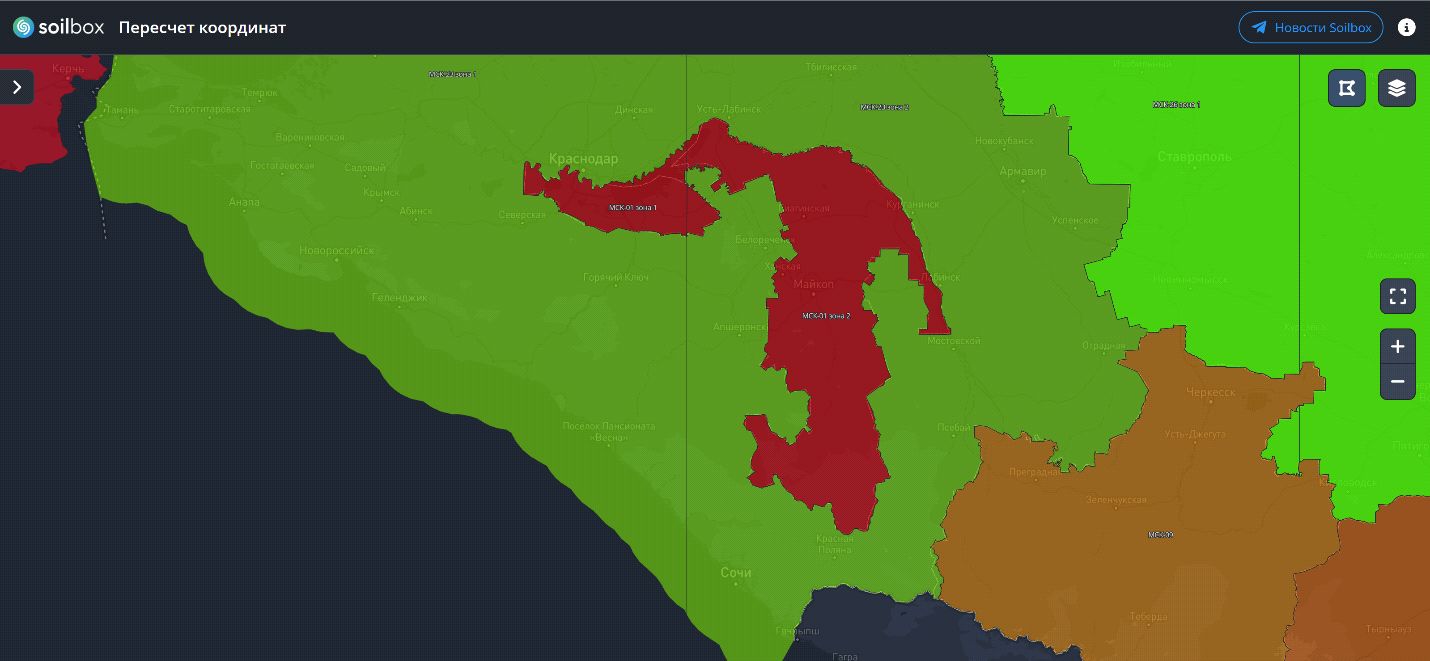 Рис. 9. Сервис трансформации координат