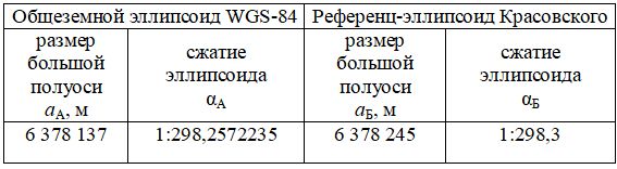 Таблица 3. Параметры общеземного эллипсоида WGS-84 и референц-эллипсоида Красовского
