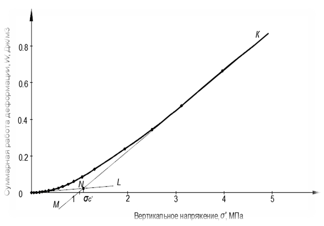 Метод Беккера или энергетический метод появился позже. Он основан на зависимости суммарной работы деформации в зависимости от вертикального напряжения (рис.9).