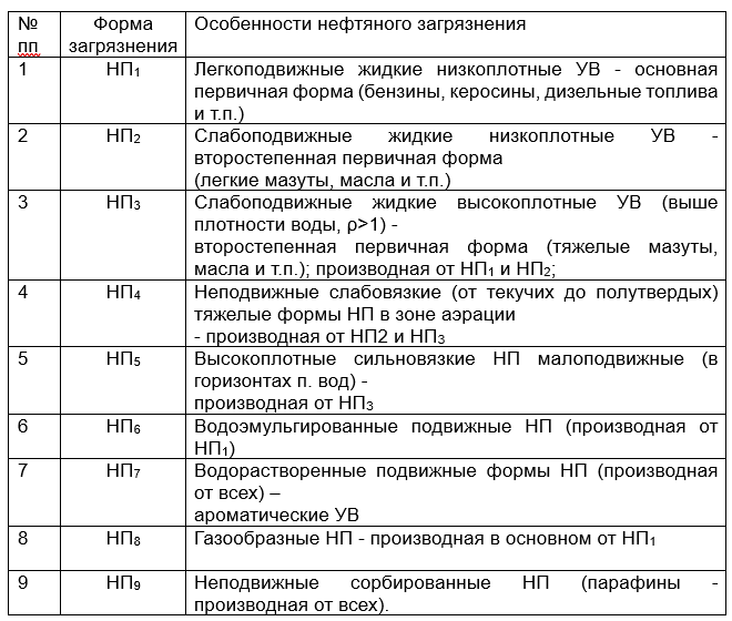 Таблица 1. Формы нефтяных загрязнений в грунтах