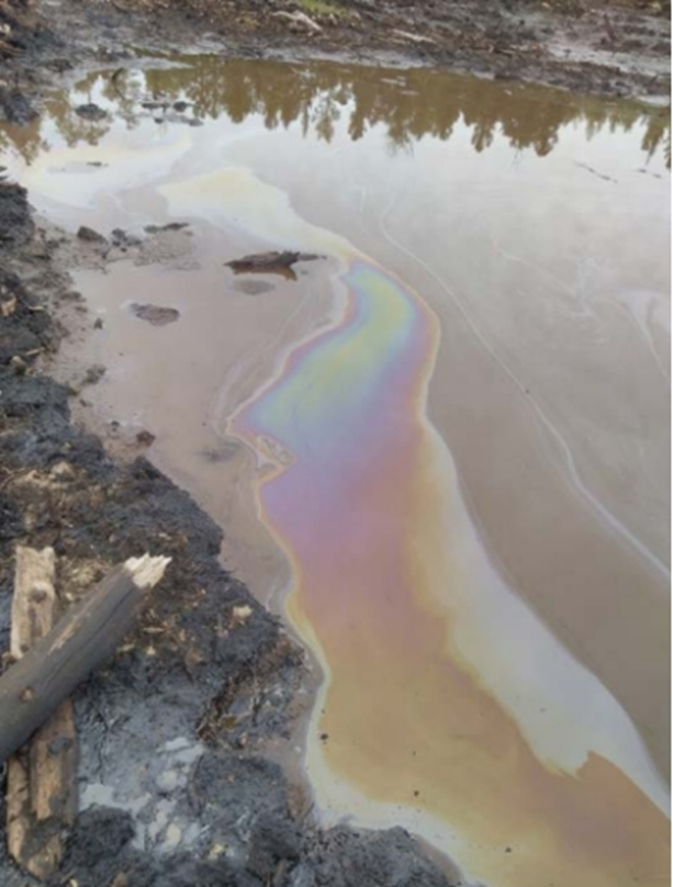 Рис. 7. Пример «Радужной» пленки, которая допустима как остаточный элемент после проведения работ по рекультивации (фото Королева В.С., 2021)