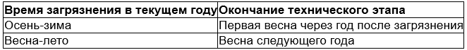 Таблица 7. Сроки проведения работ по ликвидации последствий разлива нефтепродуктов и начала технического этапа рекультивации (