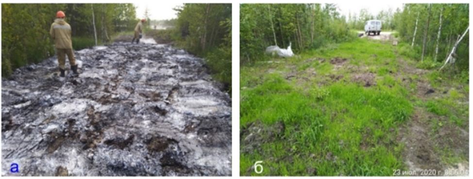 При проведении работ по срезке нефтезагрязненного торфа также необходимо исключать возможности вторичного загрязнения во временных местах складирования. Этого можно достичь путем предварительного создания гидроизоляционного слоя. Однако главная проблема заключается не в этом. Нефтезагрязненный с забитумизированной нефтью торф вывозят на самосвалах на специальные полигоны, где впоследствии утилизируют. При этом безвозвратно теряются огромные объемы геологического торфяного ресурса. Однако важно учитывать, чтобы избежать отрицательного воздействия на окружающую среду при термической утилизации забитумизированной нефти с торфом, должны использоваться технологии, прописанные в