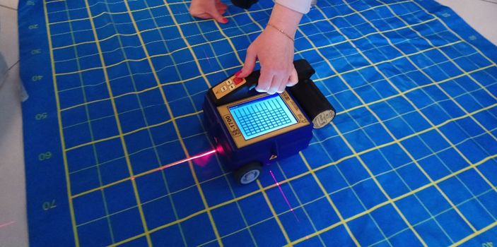 Ранее георадарная съемка выполнялась по сети параллельных профилей, расположенных с шагом от 0,3 м до 1 м. Каждый профиль выполнялся прямолинейно вдоль натянутого шнура либо по заранее выполненной разметке цветными мелками, баллончиком с краской, либо по характерным элементам поверхности участка. Для дополнительной привязки георадарных профилей на местности обычно использовали специальную разметочную ленту, либо размеченную веревку. При этом в процессе выполнения георадарного сканирования устанавливались специальные метки на радарограмме каждый раз при пересечении разметочной ленты. Подобный способ в дальнейшем позволял использовать данные метки при уточнении местоположения каждого параллельного профиля и достоверного построения 3D модели (рис. 1).