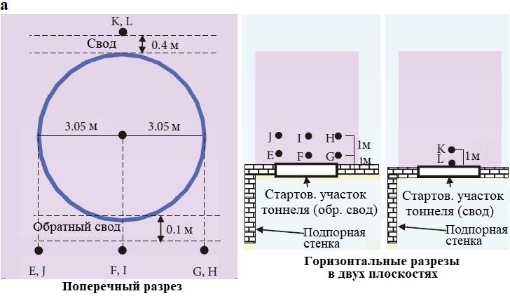 Рис. 4. Детали по стартовому участку тоннеля и зоне усиленного грунта
