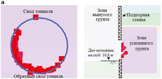 5. По результатам изучения потери прочности грунтов вследствие сосредоточенной фильтрации было выдвинуто предположение, что рассмотренное расположение усиленных грунтов, прилегающих к стартовому котловану, не предотвратит их разрушение во время врезки проходческого щита. Однако из-за различных доступных результатов определений и предлагаемых механизмов разрушений должна быть выполнена дополнительная проверка коэффициента безопасности по условиям суффозионного выноса для любых случаев отсутствия областей нарушения прочности.