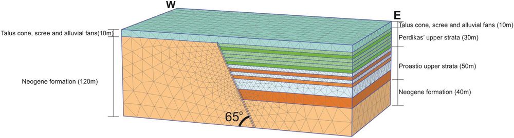 Авторы работы [1] отдельно смоделировали оседание поверхности земли на территориях населенных пунктов Анаргири, Валтонера и Фанос. Далее для каждого из этих трех случаев они изучили и сравнили степени влияния на величины вертикальных деформаций со стороны геотехнических параметров геологических формаций, амплитуд смещений по разломам, углов падения плоскостей разломов и снижения уровней грунтовых вод.