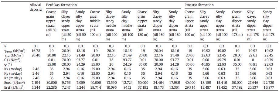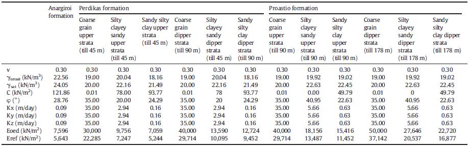 Геотехнические данные для слоев грунта, использованные при моделировании для Анаргири, были получены при лабораторных испытаниях многочисленных образцов, собранных в ходе предыдущих исследований авторов статьи [1], а также путем оценки результатов, опубликованных другими учеными.