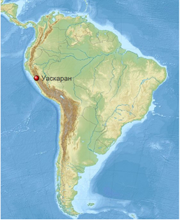 Рис. 4. Гора Уаскаран в Андах на карте Южной Америки [24]