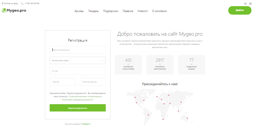 Этапы регистрации максимально упрощены. Но для самых занятых участников платформы есть возможность пройти ее с помощью менеджера портала, который свяжется с вами в любое удобное время и введет всю необходимую информацию в базу Mygeo.pro.