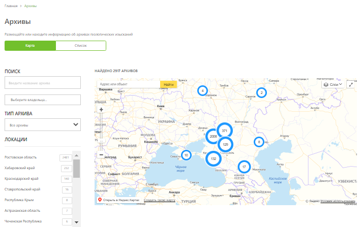 Все материалы Mygeo.pro публикуются только с согласия правообладателя. Для удобства пользователей в личном кабинете есть функция систематизации собственных архивов: они могут отображаться на интерактивной карте или в виде списка. При желании все архивы можно скрыть от третьих лиц. В разделе «Архив» представлены регионы Российской Федерации. Достаточно ввести в окно поиска нужный район и получить результат. Также возможен поиск по ключевым словам, категориям изысканий и глубине бурения.