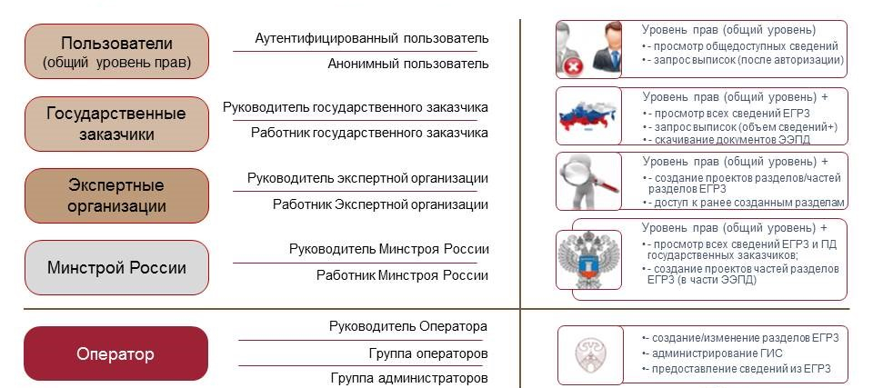 Рис.1. Группы пользователей и уровень прав в ЕГРЗ