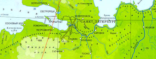 Рис. 3. Бассейн Невы в широком смысле (желтый фон). Северо-запад России [7]