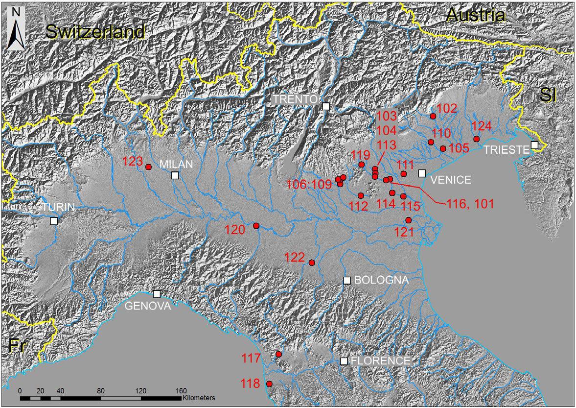 Данные, собранные в 2008–2018 годах на сотнях километров дамб вдоль ряда рек Северной и Центральной Италии (рис. 2), позволили авторам работы [1] оценить возможности и ограничения разработанного ими подхода.