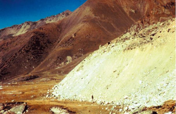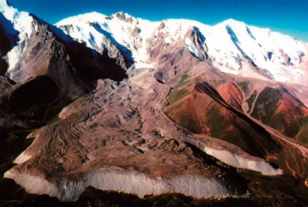 Рис. 3. Фронтальный уступ-откос (зона разгрузки) активного каменного глетчера в Северном Тянь-Шане [1]