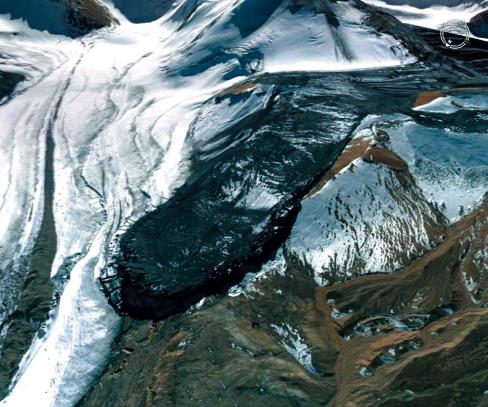 Рис. 16. Техногенный каменный глетчер на киргизском золоторудном месторождении Кумтор, Тянь-Шань [1, 8]
