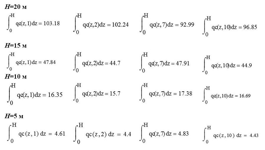 Оказывается, что эти результаты интегрирования близки для всех четырех графиков для каждой из рассмотренных глубин (максимальное различие около 10%). Как показала детальная проверка, это справедливо и для всех остальных 12 графиков в точках на рисунке 1. Отсюда вывод: такие результаты являются достаточно представительными для расчета осадок и кренов проектируемого сооружения на основании в виде контактной модели Винклера с переменным в плане коэффициентом постели, по методу, изложенному ранее в [1] без построения стратификации и выделения ИГЭ.