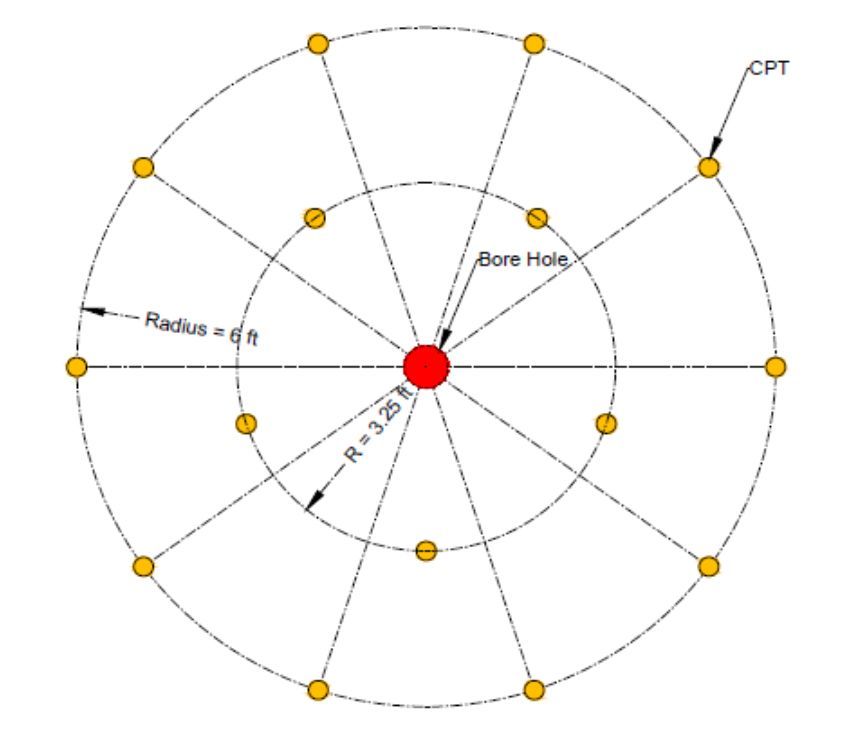 Рис. 1. План расположения точек зондирования в круге диаметром 4 м (13 футов)