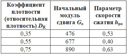 Таблица 1. Входные параметры для верификации модели PM4Sand