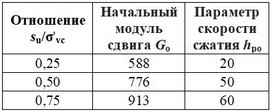 Три основных входных параметра для комплексной геомеханической модели поведения пылеватого грунта PM4Silt включают отношение недренированной прочности на сдвиг к полному вертикальному напряжению, которое будет приложено к образцу (su/σ‘vc), начальный модуль сдвига Go и параметр скорости сжатия hpo.