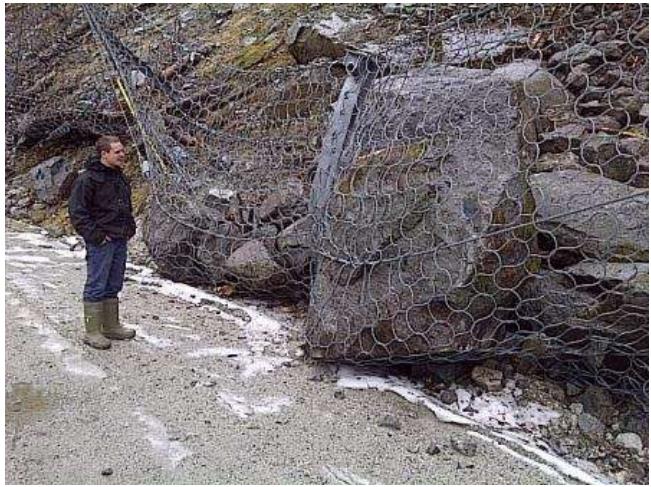 Рис. 8. Камнеулавливающий барьер после камнепада в декабре 2011 года [1]