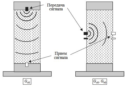 Рис. 10. Варианты установки изгибных  пьезоэлементов при трехосных испытаниях для определения вертикального (Gv0) и горизонтального (Gh0) модулей сдвига [1]