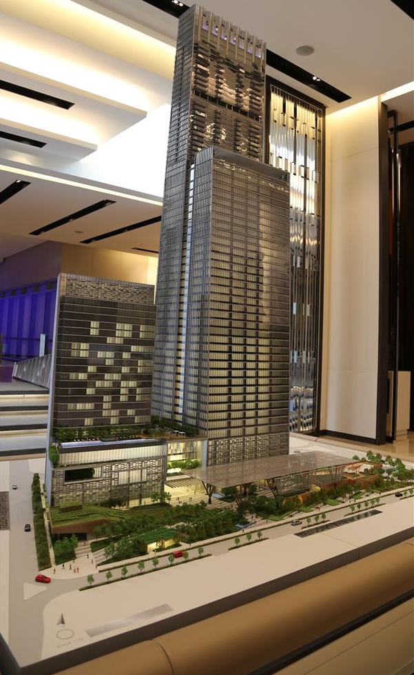 Рис. 2. Физическая модель и компьютерные визуализации комплекса «Башня Гуоко»