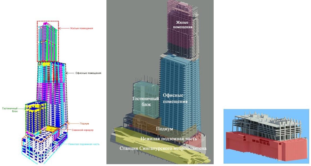 Рис. 3. Трехмерные модели конструкций комплекса «Башня Гуоко»