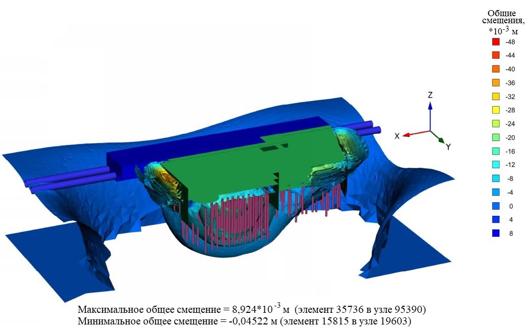 Таким образом удалось без всякого риска исключить многие избыточные работы не только в процессе компьютерных расчетов и проектирования, но и в ходе строительства (например, ввиду ограничений строительной площадки удалось не устраивать некоторые наклонные угловые распорки и первоначально запланированную берму). Все это позволило в значительной степени сэкономить время и деньги.