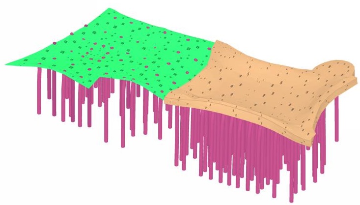 Рис. 6. Модель комбинированной конструкции фундамента комплекса «Башня Гуоко», полученная компанией Arup Singapore в программном комплексе PLAXIS 3D