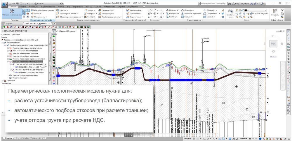Когда мы перешли на платформу Autodesk Civil 3D, стало ясно, что наша изыскательская модель, особенно ее геологическая часть, может использоваться не только для проектирования напорных трубопроводов. Функционал GeoSolution дал возможность работать с данными инженерно-геологических изысканий проектировщикам автомобильных и железных дорог, генпланистам и даже архитекторам.