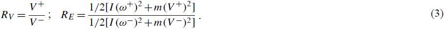Ряд моделей камнепадов представляет отскок в упрощенном виде с помощью одного или двух общих коэффициентов, уже упомянутых выше, которые называются коэффициентами реституции. Некоторые модели используют только один коэффициент реституции, количественно оценивая диссипацию энергии через потерю величины скорости (Kamijo et al., 2000; Paronuzzi, 1989; Spang, Rautenstrauch, 1988; Spang, Sonser, 1995) или через потерю кинетической энергии (например, Azzoni et al., 1995; Bozzolo, Pamini, 1986; Chau et al., 1999a; Urciuoli, 1988). В этом случае для полного определения вектора скорости после удара необходимо принять допущение относительно направления отскока, то есть угла α+ (см. рис. 6). Коэффициент RV учитывают при составлении формулы с точки зрения потери скорости, а коэффициент RE используют при составлении формулы с точки зрения кинетической энергии (в целом пренебрегая вращательной частью движений):