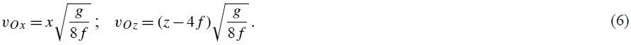 По полевым данным можно определить «воздушные параболы» одиночных прыжков с соответствующими скоростями. На рисунке 7 верхний ударный «кратер» O соответствует началу такой параболы, а другому ее концу соответствует нижний «кратер» E. Начальную скорость отскока (отрыва от земли) обозначим vO, а ее горизонтальную и вертикальную составляющие – соответственно vОx и vОz. Скорость следующего удара обозначим vE, а ее горизонтальную и вертикальную составляющие – соответственно vEx и vEz.