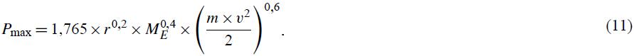 Динамическая сила Pmax, приложенная к верхней части подушечного слоя при падении на него камня, определяется следующим эмпирическим уравнением (Montani-Stoffel, 1998):