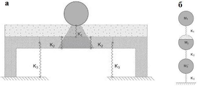 На основе системы со многими степенями свободы (SMDF – System with Multiple Degrees of Freedom) для ударных нагрузок (Comite-Euro-International du Beton, 1988) была предложена новая аналитическая модель для проектирования противокамнепадных галерей, которая позволяет прогнозировать разрушения как при сдвиге, так и при изгибе (Schellenberg et al., 2008, рис. 15).