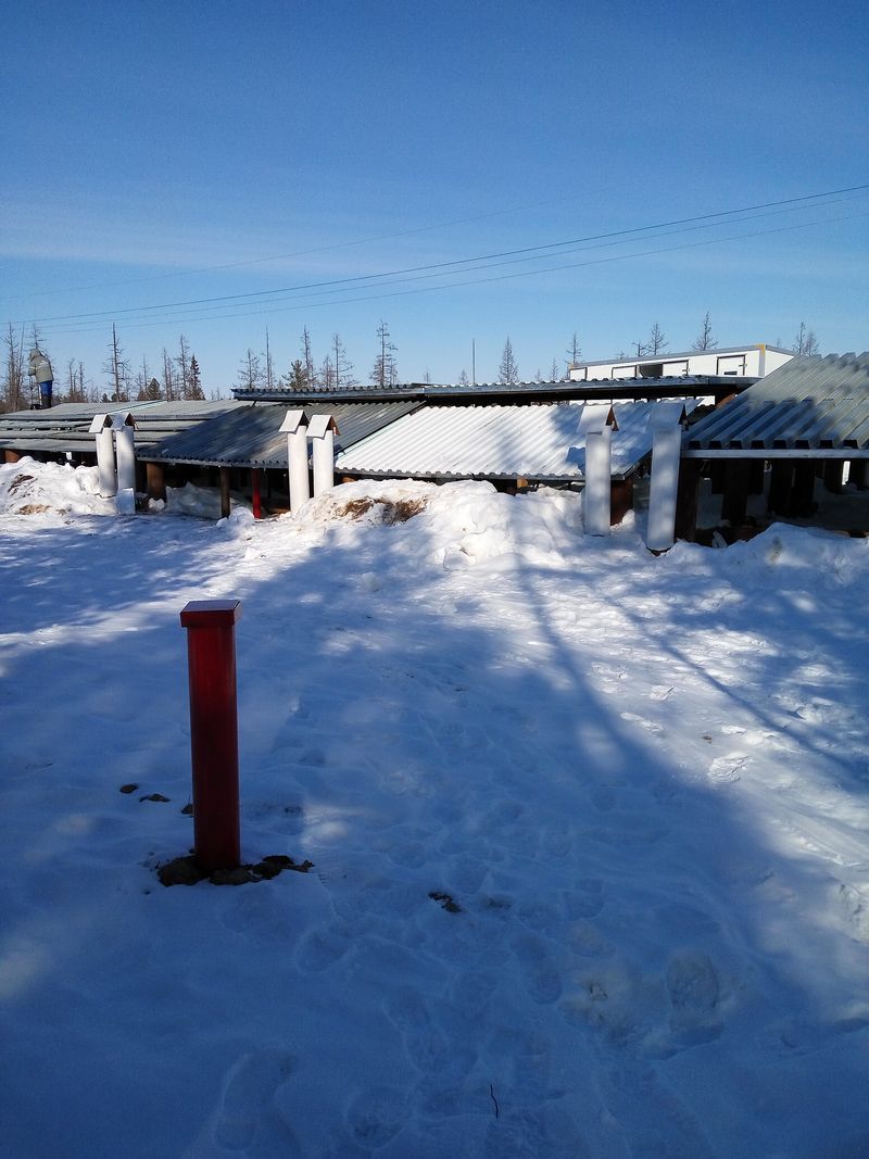 Так же системы мониторинга температуры и тепловых потоков применяются на экспериментальных участках нефтепроводов, где для стабилизации грунтов используются навесы. На рисунке 5 представлена схема расположения навесов и систем мониторинга температуры (термометрическая скважина) и тепловых потоков (тепломер) на опорах надземного нефтепровода. На рисунке 6 представлено фото одной из опор нефтепровода с навесом.