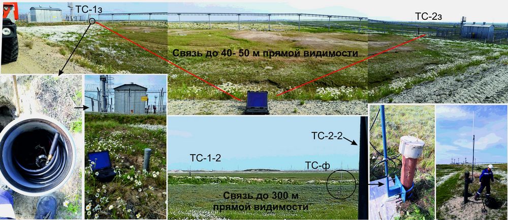 Так же на участках газопровода устанавливают радиоканальное термометрическое оборудование (в составе МЦДТ 1301 и логгеров ЛЦД – 1/100 РМ). Схема такого размещения представлена на рисунке 3, фото местности с сетью термометрических скважин представлено на рисунке 4.