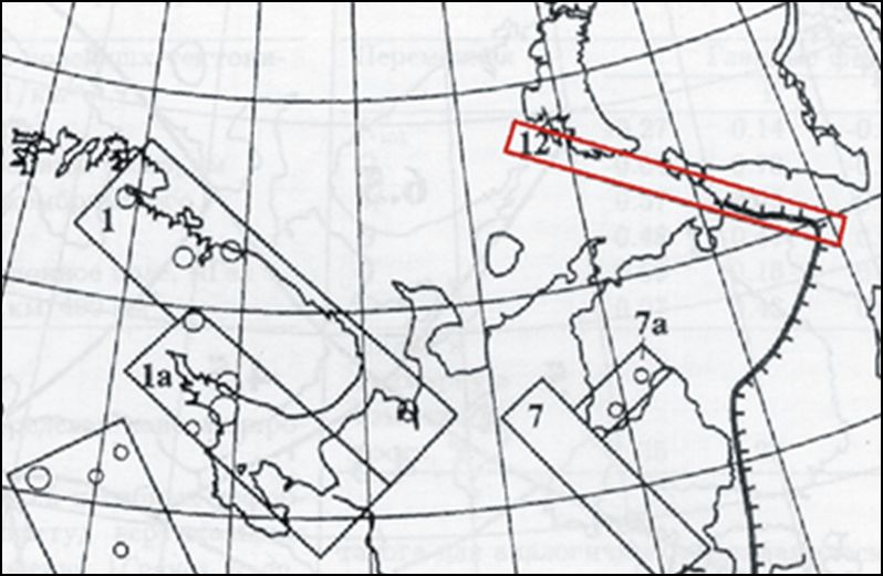 Таблица. 1. Интенсивность сейсмических воздействий в пределах Южно-Баренцевской синеклизы (расчетный период повторяемости, Т=1000 лет)