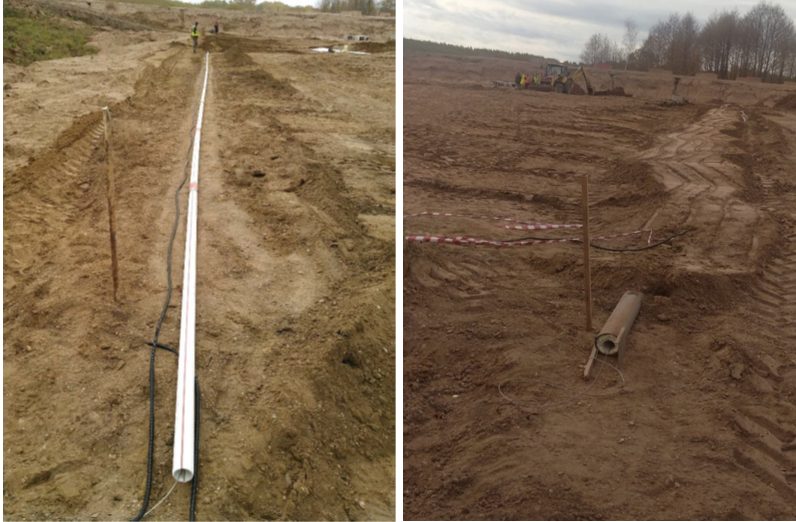 Измерения производят через специально проложенный в основании насыпи инклинометрический измерительный канал (ИИК) из специальных пластиковых труб, который является измерительной траекторией для инклинометрического зонда, производящего измерения. Его укладывают на выровненное основание насыпи (или неглубокую траншею) до начала земляных работ, засыпают грунтом для фиксации и проезда техники (рисунок 4).