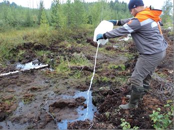 Рис. 2. Внесение бактериального препарата на нефтезагрязненном участке
