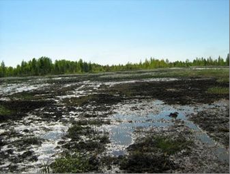 Рис. 1. Нефтезагрязненный участок на территории одного из месторождений углеводородов в Западной Сибири