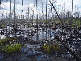 Рис. 3. Участок на месторождении Западной Сибири, который предполагалось рекультивировать, в год загрязнения нефтью (2006 г.)